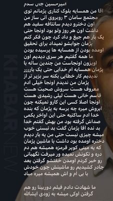 همسایه پژمان جمشیدی مدعی شده که  « اون دختر سانتافه دار بخاطر اینکه پژمان جوابش را نداد جیغ و داد کرد....»