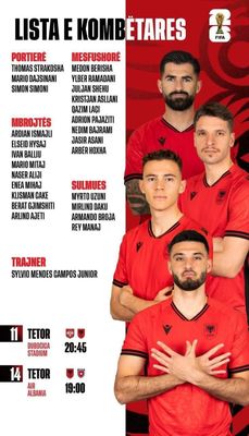 اردوی تیم ملی آلبانی روز دوشنبه، ۶ اکتبر، در تیرانا آغاز خواهد شد؛ جایی که این تیم ابتدا خود را برای دیدار انتخابی جام جهانی برابر صربستان آماده می‌کند. این مسابقه روز ۱۱ اکتبر در ورزشگاه «گرادسکی استادیون دوبوچیچا» شهر لسکواتس، ساعت ۲۰:۴۵ برگزار خواهد شد.
